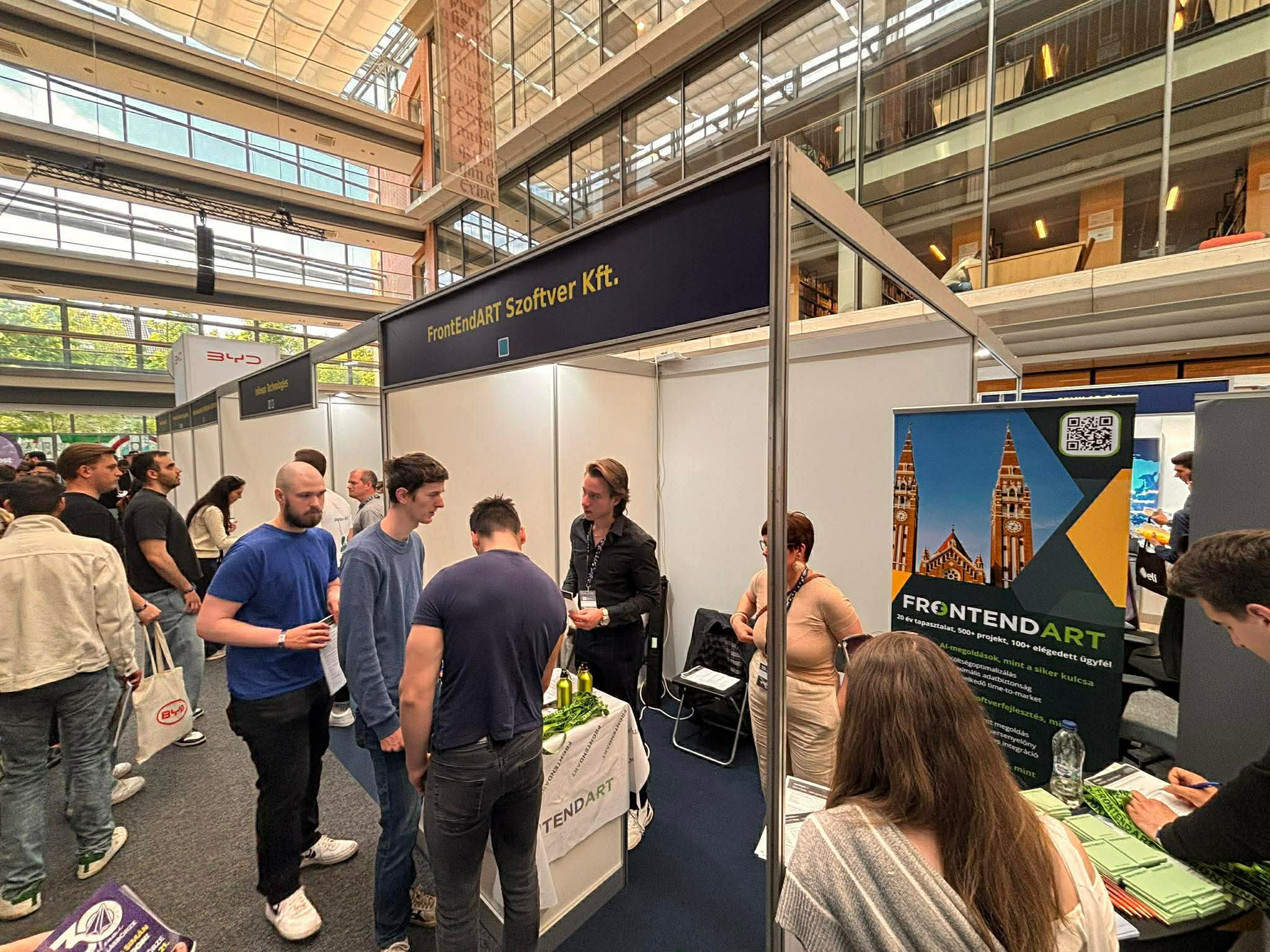 Most pedig már nem az a kérdés, hogy érdemes-e kinézni, hanem az, hogy mennyit késel, ha még nem indultál el. Rengetegen vannak a TIK-ben, és ez abszolút passzol ahhoz, amit előre ígért az esemény: a standoknál komoly a mozgás, mindenfelé beszélgetések, kapcsolatépítés, álláslehetőségek és karrierkérdések pörögnek. A jubileumi SZTE Állásbörze ma 17 óráig vár a TIK-ben, szóval még bőven nem késő elindulni. A kiállítók között ott van például a BYD Auto Hungary Kft., az MBH Bank Nyrt., a Rackhost Zrt., az ELI ALPS Lézeres Kutatóintézet, a Goodwill Pharma, a Continental és az ExtractumPharma Zrt. is, vagyis tényleg széles a merítés, ha pályakezdőként, karrierváltóként vagy akkor is, ha csak kíváncsiságból néznél körül.