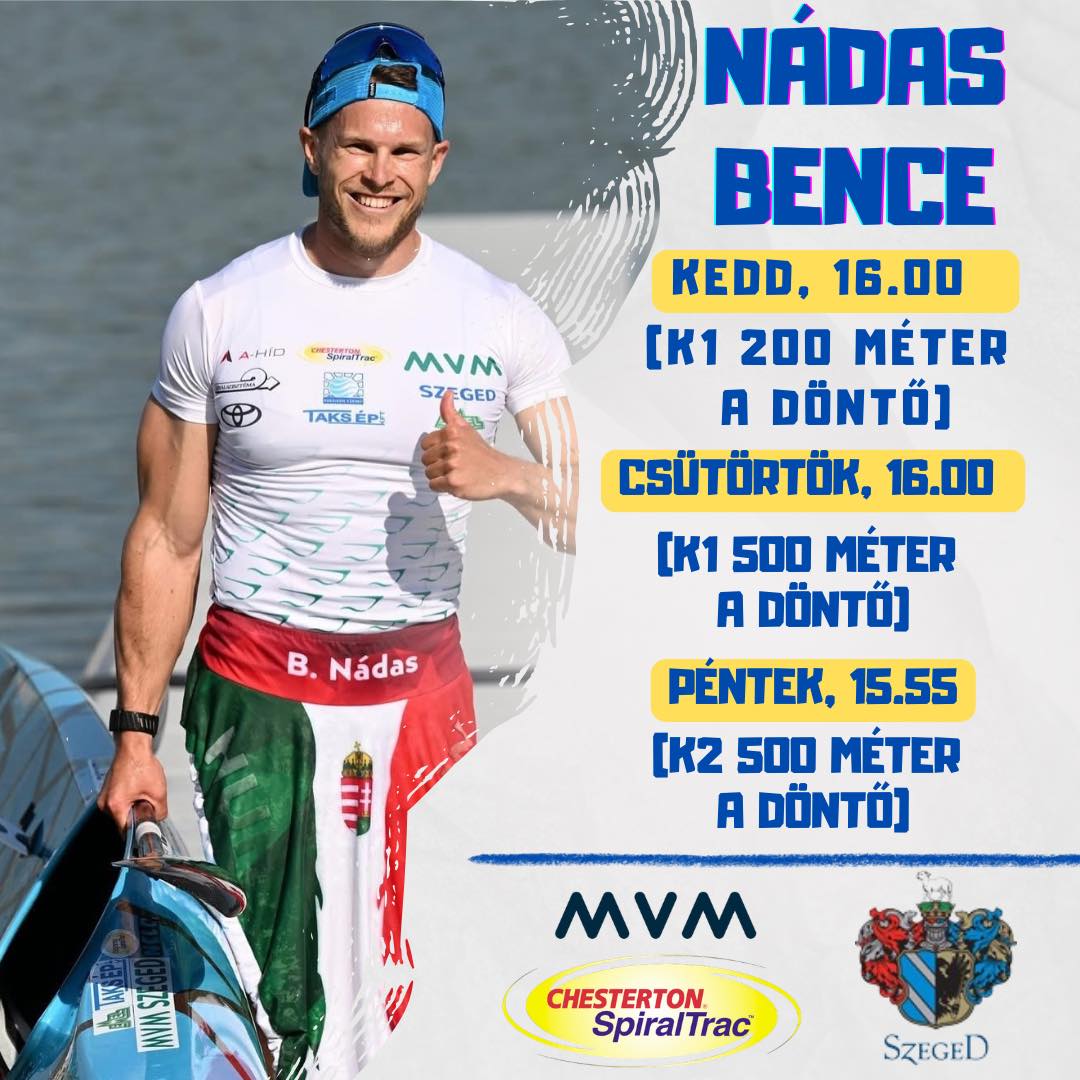Keddtől tehát a Maty-éren kezdődik a szezon, Nádas Bence három számban indul, és a Szegedi Vízisport Egyesület szerint az alábbi időpontokban döntőzhet: