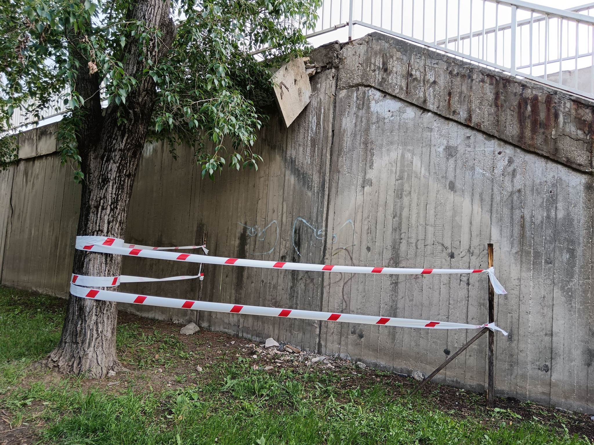 Szakembör rovatunk bemutatja: omlik a betonfal a Bertalan hídon, már körbe is kerítették szalaggal