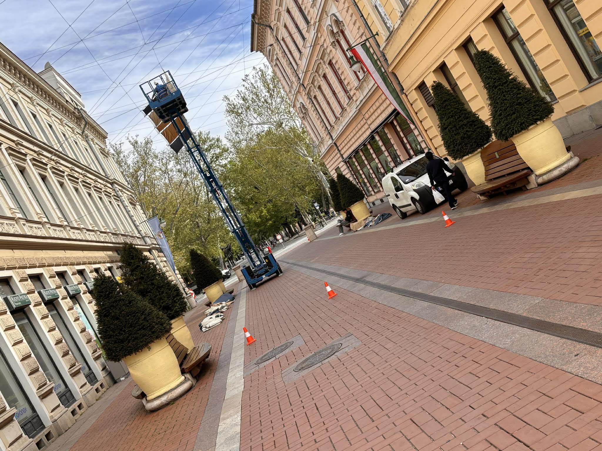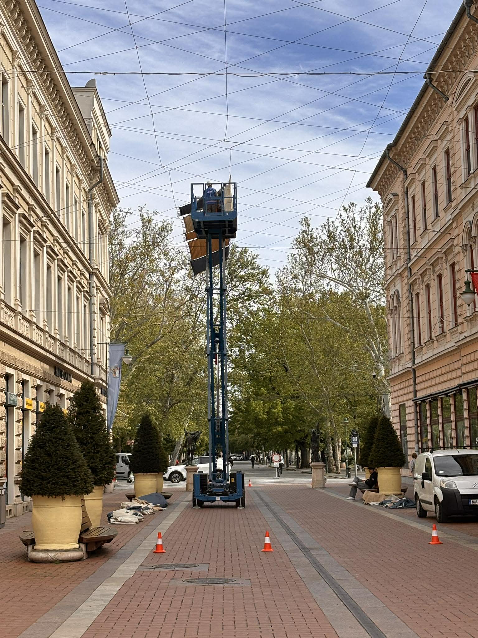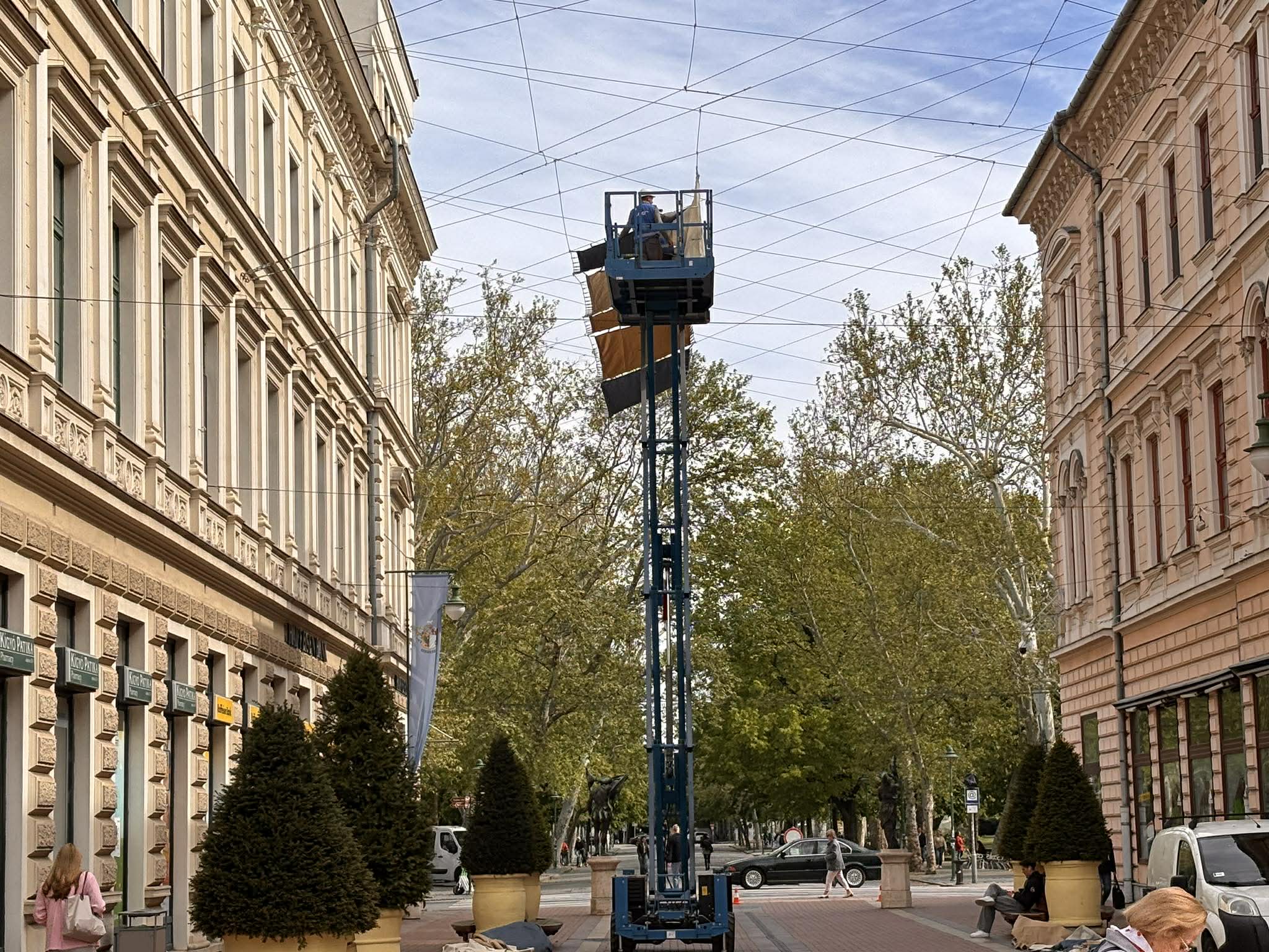 Ahogy arról a Szeged365.hu korábban beszámolt, március elején kezdődtek meg a munkálatok a Kárász utcán, amelyek során leszerelték a karácsonyi fényfüzéreket. Makrai László korábbi ígérete szerint a napvitorlák felszerelésére májusban került volna sor, ám a munkálatokat végül a tervezettnél korábban elkezdték.