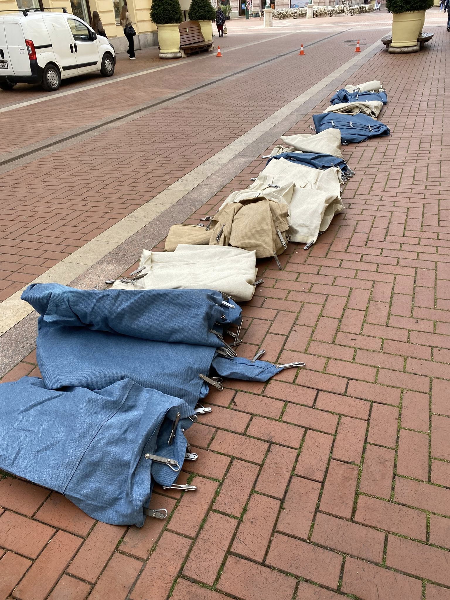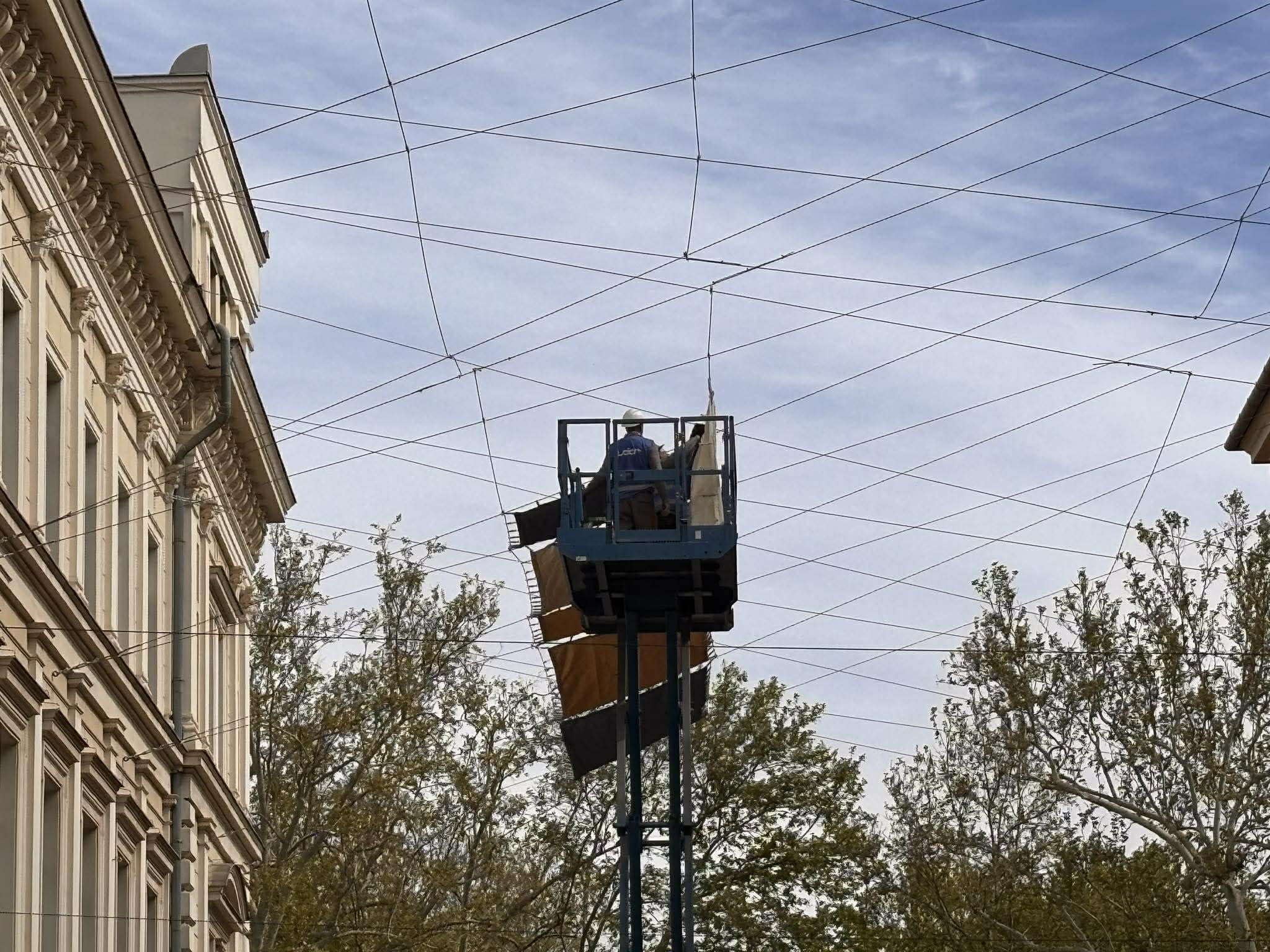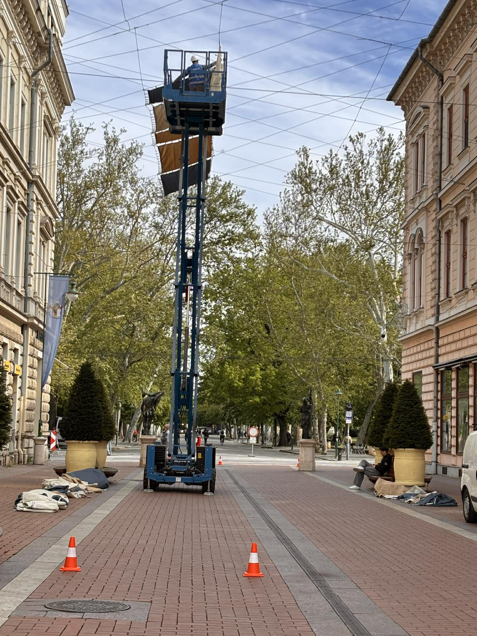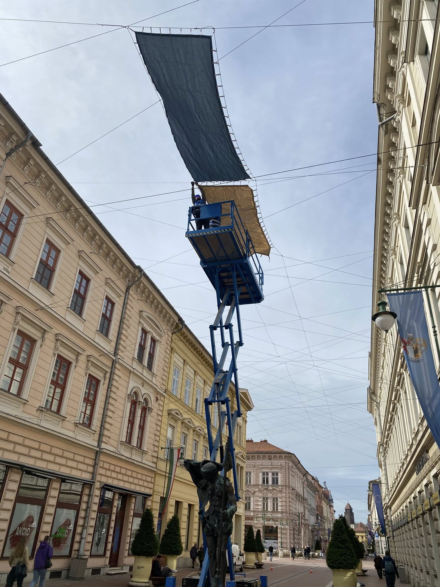 Itt a szegedi nyár? Elkezdték felszerelni a napvitorlákat a Kárász utcán (fotókkal)