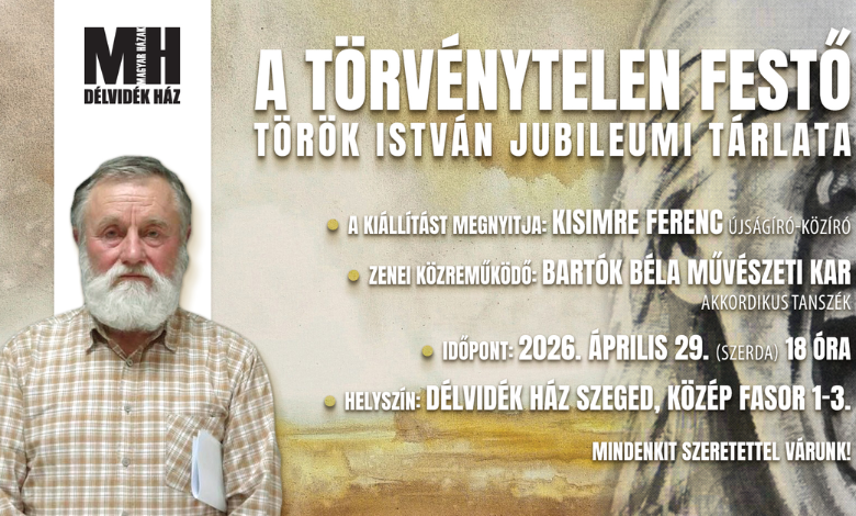 Van az az életmű, amely mellett nem lehet csak úgy elsétálni. Április 29-én, szerdán 18 órától a szegedi Délvidék Ház Újvidék termében Török István jubileumi tárlata nyílik meg, méghozzá a művész 85. születésnapja alkalmából. A délvidéki magyar képzőművészet egyik legszuverénebb alkotója több mint másfél ezer szabadkai mozi óriásplakátot festett, most pedig Szegeden mutatja meg azt a belső erőt, amely egy egész életművet mozgat. Ez nemcsak egy kerek évforduló, hanem egy kivételes alkotói sors ünnepe is, amely a csurgói szikes földektől a városi mozik csillogó, mégis mulandó világáig ível.