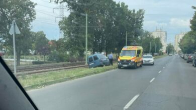 Baleset történt a József Attila sugárúton, egy autó lesodródott az úttestről (frissítve)