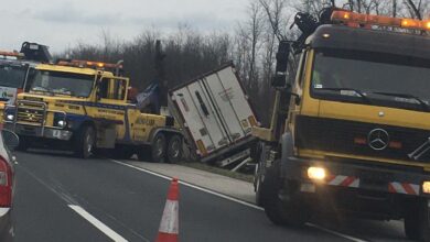 24 tonna burgonyát szállító kamion borult az árokba az M5-ösön, a 27-es kilométerszelvénynél