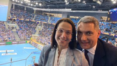 Lázár János a Pick-Montpellier meccsen csápolt