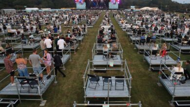 A britek feltalálták a járványügyileg korrekt koncertezésre a megoldást, a társaságok külön pódiumon foglalhatnak helyet a színpad előtt. Kicsit autósmozi…