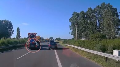 Így jár, aki türelmetlen: videón, ahogy belerongyol egy személyautó a Közút járművébe az M5-ösön (videóval)