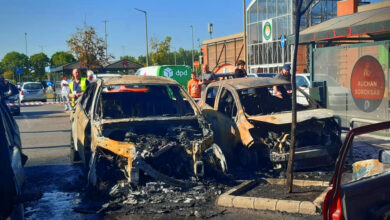 Kigyulladt és teljes terjedelmében égett egy gépkocsi az 55-ös főúton, Ásotthalom közelében, a 27. és a 28. kilométer között –…