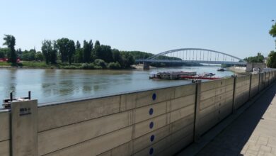 Az akár 11 méter magas vízoszloppal is elbíró mobil falrendszer szerelési gyakorlatát végezték el a mai napon a szegedi vízügyi…