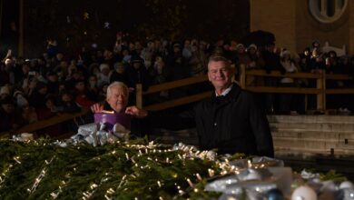 Fellobbant az első adventi gyertya Szegeden: a Dóm téren Botka László és Kiss-Rigó László indította el a várakozás idejét (fotó)