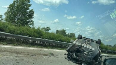 Mi van ma? Átrepült egy autó a szalagkorláton és a tetején állt meg az M5-ön (fotók) (frissítve)