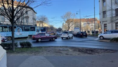 Koccanás a Dugonics téri körforgalomban! A trolik sem férnek el a balesetező autók miatt