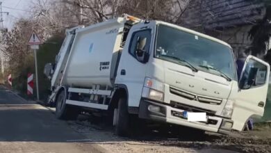 Nagyon hétfő: elakadt a sárban egy kukásautó Baktóban, a sándorfalvi lehajtónál