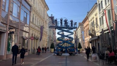 Hamarosan fényárban fog úszni Szeged főutcája: a Kárász utcán már az ünnepi fényfüzérek felhelyezésén dolgoznak a szakemberek