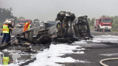 Teljes útlezárás van az M43-ason, megindult a kiégett kamion műszaki mentése