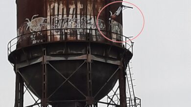Spider-Man, szegedi verzió: valaki felmerészkedett a MÁV használaton kívüli víztornyára, sőt, fejjel lefelé lógott ott