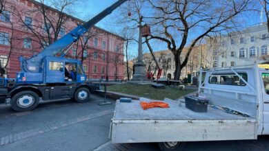 Kilenc méter magasról zuhant le a bronz turulmadár Szegeden, ma reggel visszakerült az Aradi Vértanúk terére